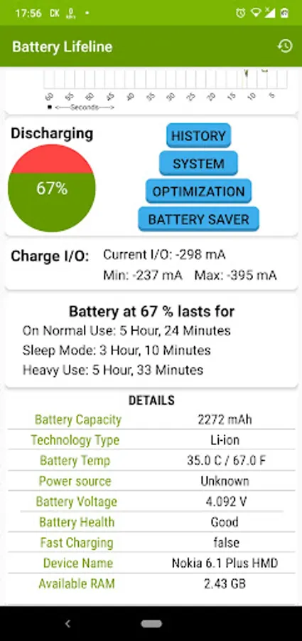 - Charge/discharge avg speed display with graph view