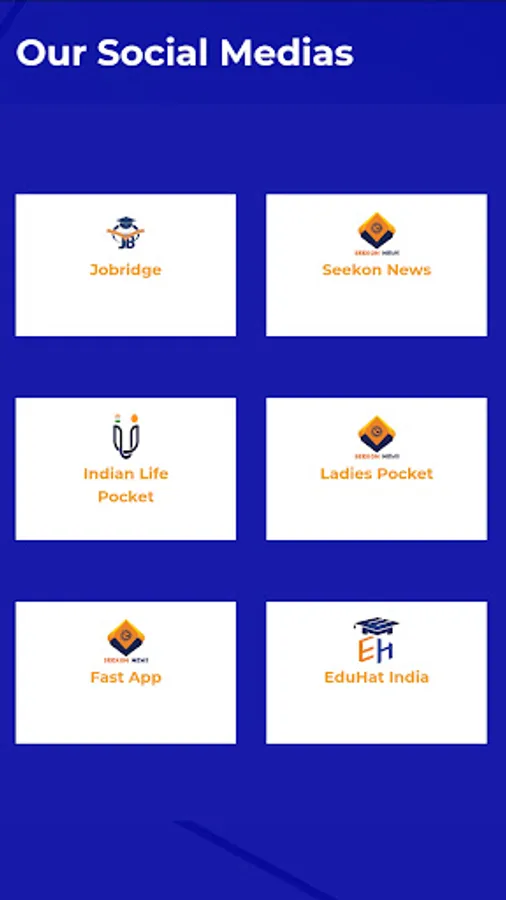 “ SAMATHWA “ Mobile Application is a common platform to reach all Social Media Platforms of Samathwa Bharathi Group in a single click and to communicate with Samathwa Bharathi Group. In this application you can reach our Malayalam News Channel “ SEEKON NEWS “, career Guidance channel “ Indian Life Pocket “ ( ILP ), ladies channel “ Ladies Pocket “, Technology and Automotive Channel “ FastApp “, Vocational Education Channel “ Eduhat “ and Job News / Information Channel “ Jobridge India “.