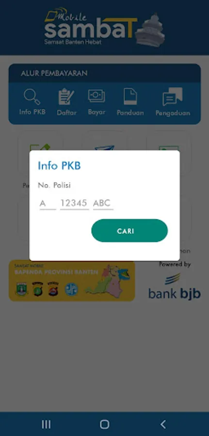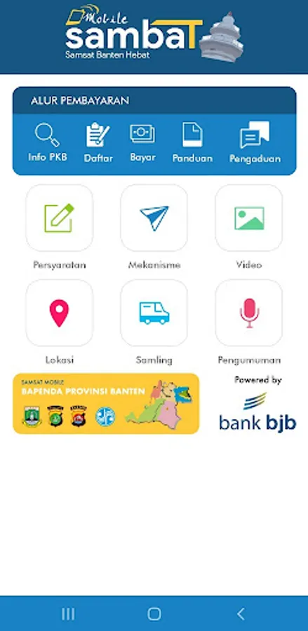 The application is a tool for paying Motor Vehicle Tax in the Banten Province area via electronic payment channels