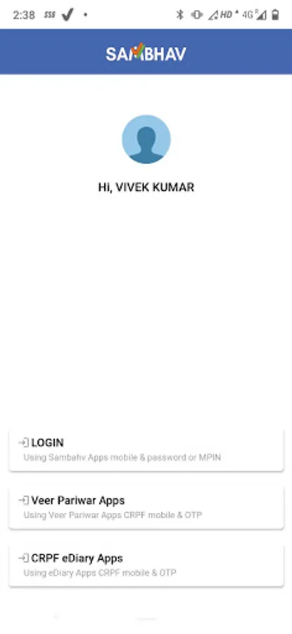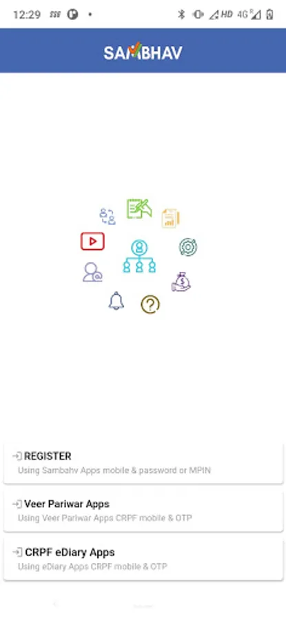 Sambhav is designed, develop & hosted as an interface between CRPF ERP (SELO) & mobile device of the users. Through this application CRPF will remain digitally connected with their employees, veterans & NOKs. Users with the help of Sambhav can perform following activities after due registration & verification: