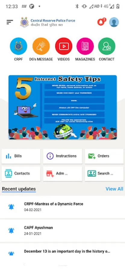 3. E Magazine / video: User can have access to all contents uploaded by the CRPF