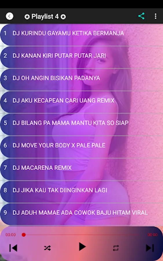 Dj Joko tingkir ngombe dawet, DJ Ngamen 5 slow, DJ Oh the beauty of my life, DJ Meneketehe if you like, DJ My pride, DJ Sailing in the sea without borders, DJ She's a girl with a red hood, DJ pok amai amai butterfly grasshoppers, DJ Can't I forget the good times with you, DJ Tongrongan we are polite, DJ young papa shakes shakes, DJ Sweet on the lips twists words, DJ When you dream of your dreams, DJ I keep love pure, DJ Only him, DJ Again I can't sleep, DJ Me indeed his soul mate, DJ I'm not a rich person, DJ Champion in my heart, DJ In my loneliness you are my joke, DJ love to death, DJ Keep hiding me, DJ Dear diary I want to tell you, DJ She's a girl with a red hood Sailing On The Viral Ocean,