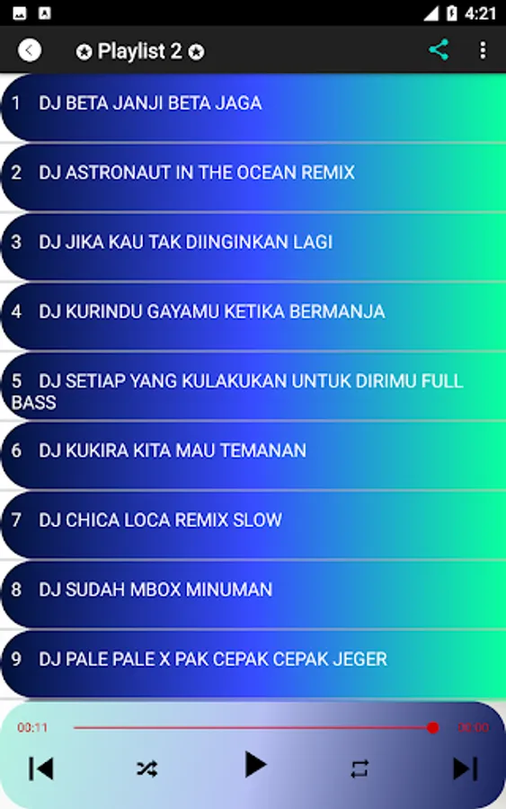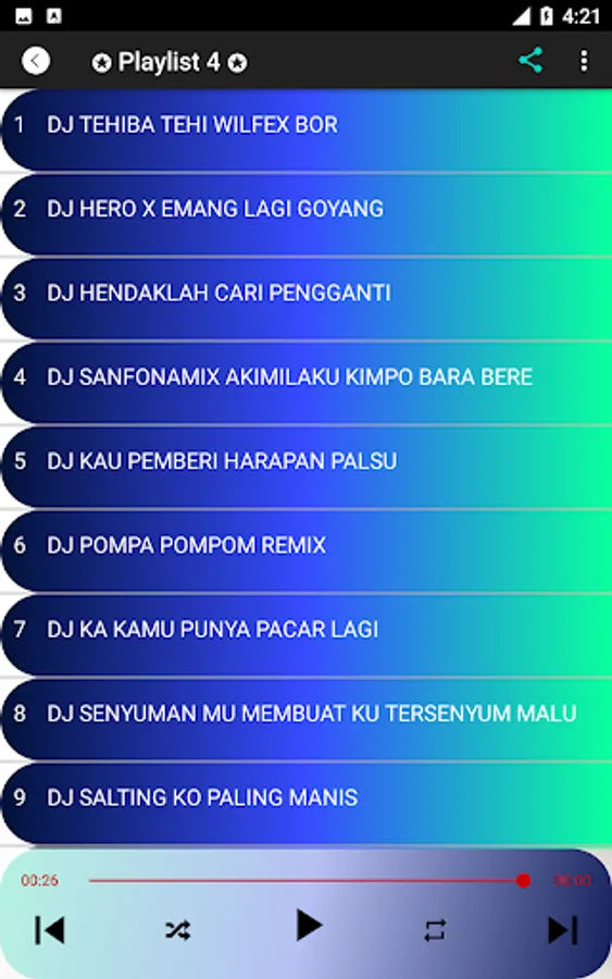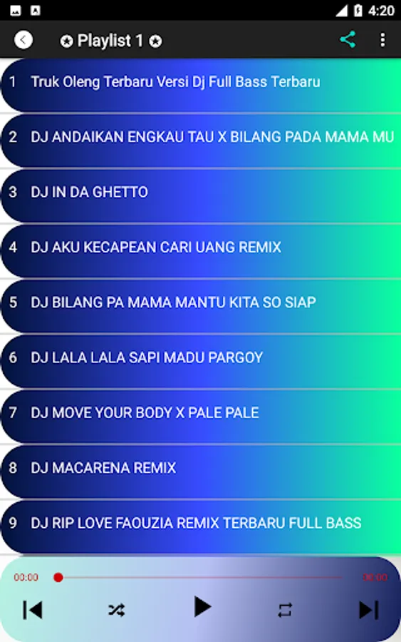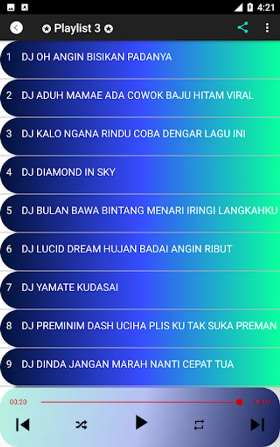 This DJ Play Mixer application has various advantages and features that are comfortable to use from a very cool or cool appearance, this application can also be played offline so you can listen to all albums of dj koplo songs, remixes, clubbing remixes, dj dangdut, dangdut remixes, dangdut remix nonstop, rhyo ajha dj dangdut, others continuously,