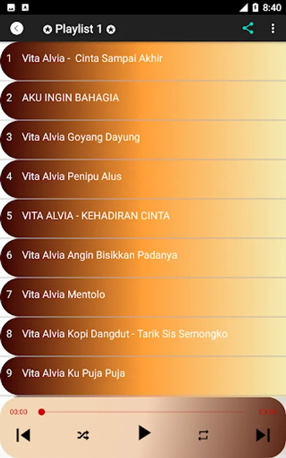 The Vita Alvia Full Album Offline Song application is the lightest & easiest to use, this vita alvia song collection application is a music application for you music lovers, a collection of offline vita alvia songs and a dangdut disco vita alvia. There are the latest & currently viral songs, such as disco dangdut, remix dangdut and other best dangdut songs