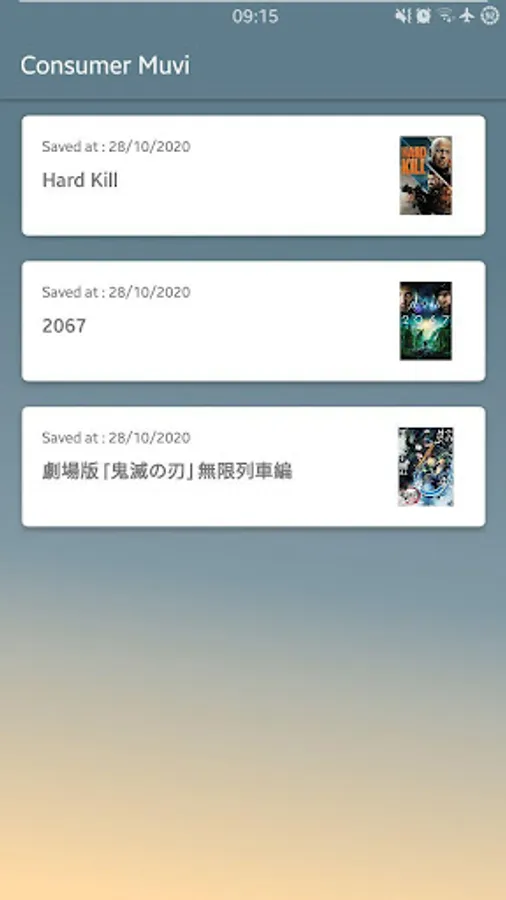 An application to view a list of saved data from the Muvi application