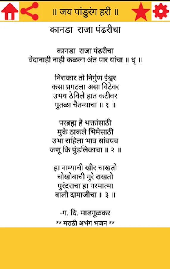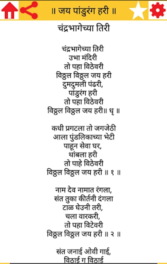 This app provides a collection of well known Marathi Abhang, Bhanan, Gaulan and Bhaktigite.