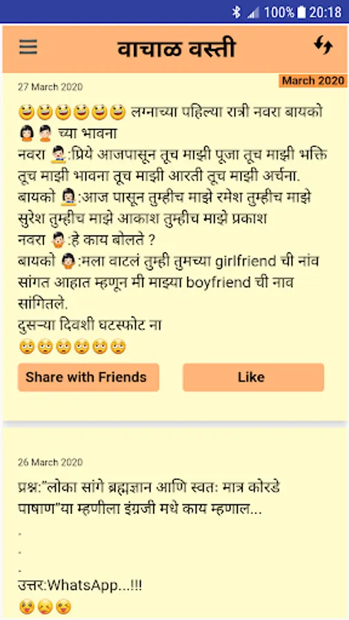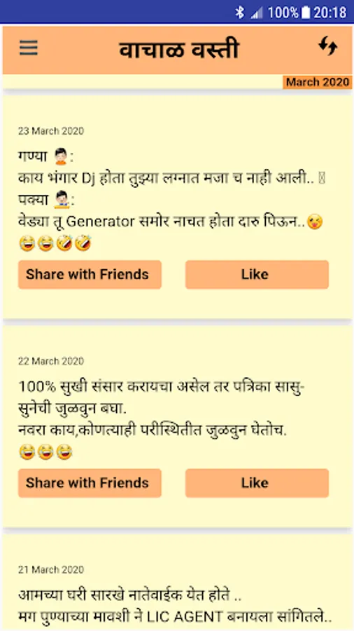 The UI is very user friendly. User can share the jokes with friends on any messaging apps, social networks or can send them using email. User can save liked jokes and make a favorite joke list or bookmark them.