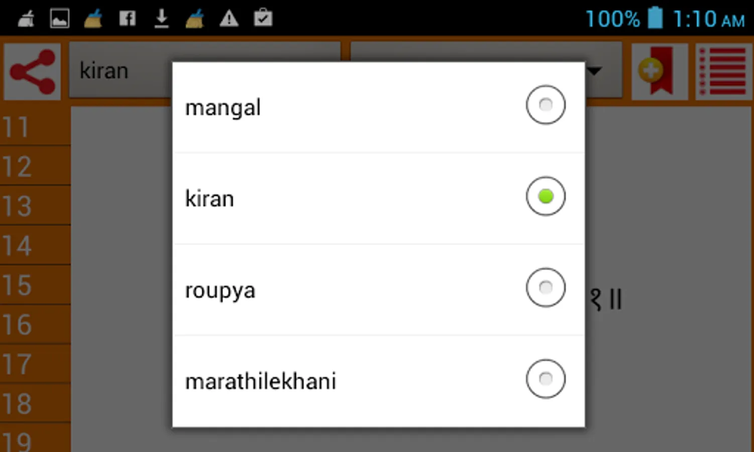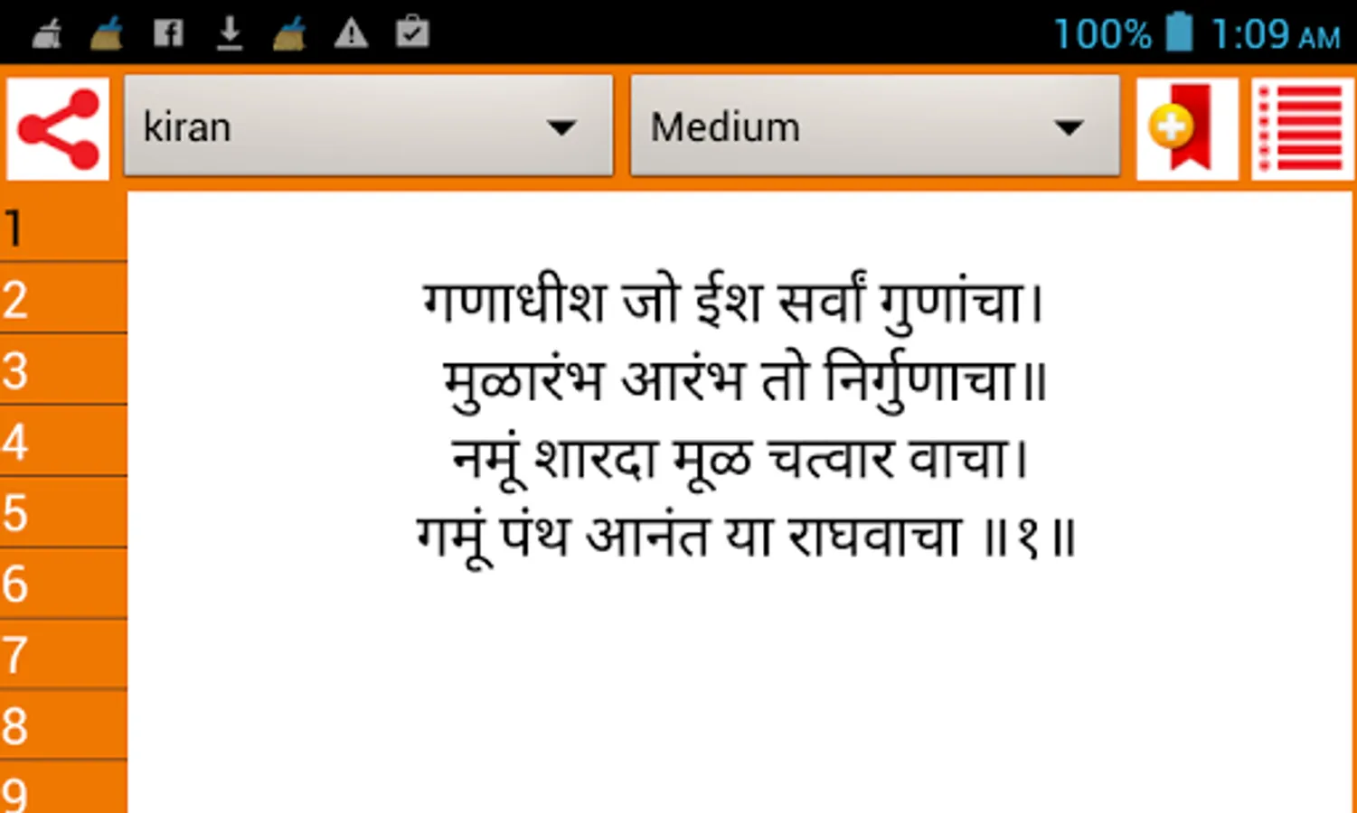 User can bookmark any number of shloks and bookmarked shloks can be easily accessed using bookmark list button at top right.