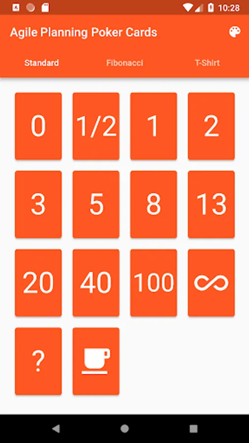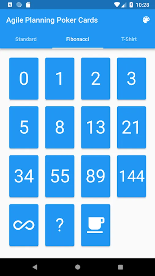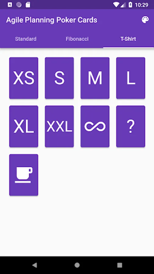 - Standard, Fibonacci, and T-Shirt Sizing Card sets