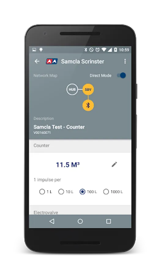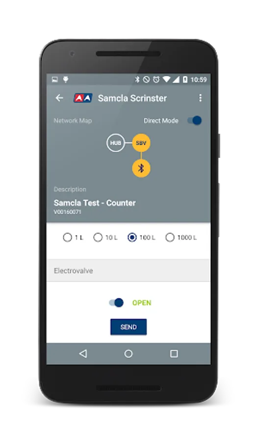 Scrinster is the professional APP for managing , in field and with no Internet connection, all Samcla SCR devices. Samcla CNS600 gateway is required to connect Scrinster APP with terminal devices. Smartphone Bluetooth connection is used to connect the Scrinster APP and the gateway CNS600 each other. All basic functions are available in the APP: battery test, RF level test, Counters reading, manual watering, etc.