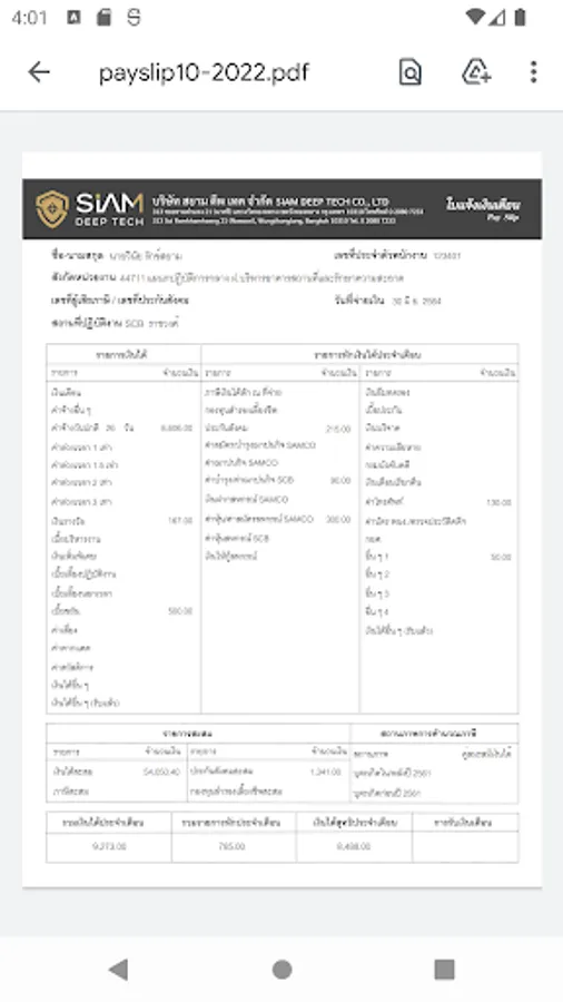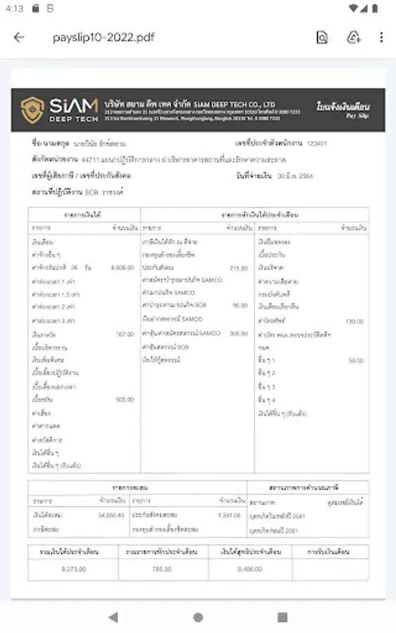 Program for viewing salary slips for employees of Siam Deep Tech Co., Ltd.