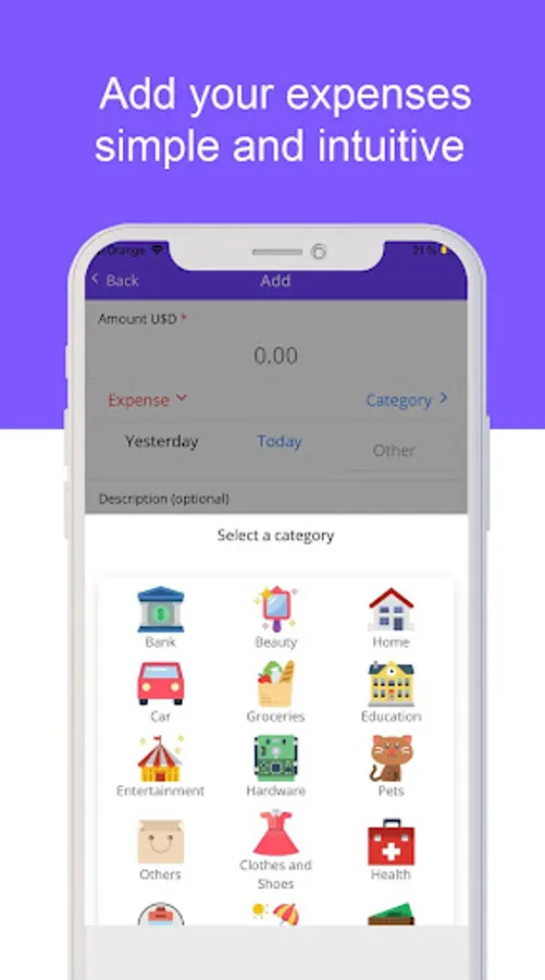 Its features are simplicity of use, with a button you add the expense and category, the other fields are optional to bring more control or simply know by categories.