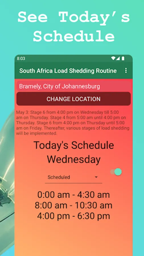 Stay informed, stay prepared, and tackle load shedding effectively with the Load Shedding Schedule app. Download now and take control of your power outage experience in South Africa.
