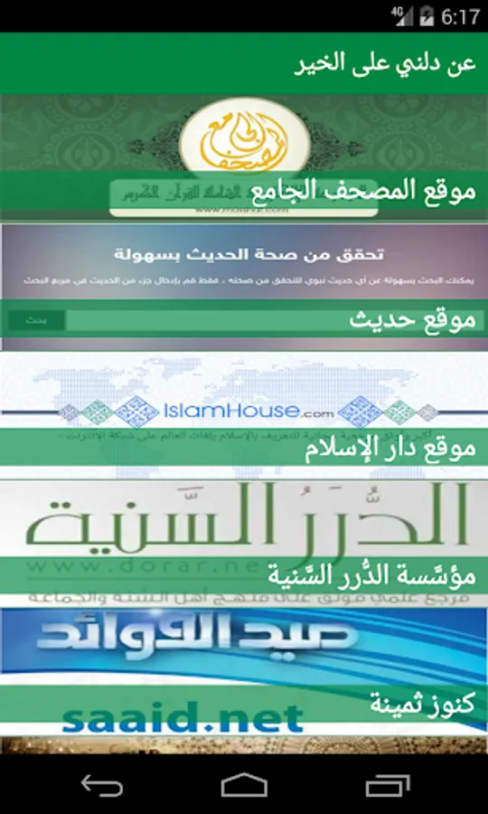 The application includes a guide to a group of sites and applications to know it and take advantage of them and can be shared with friends through the application interface.