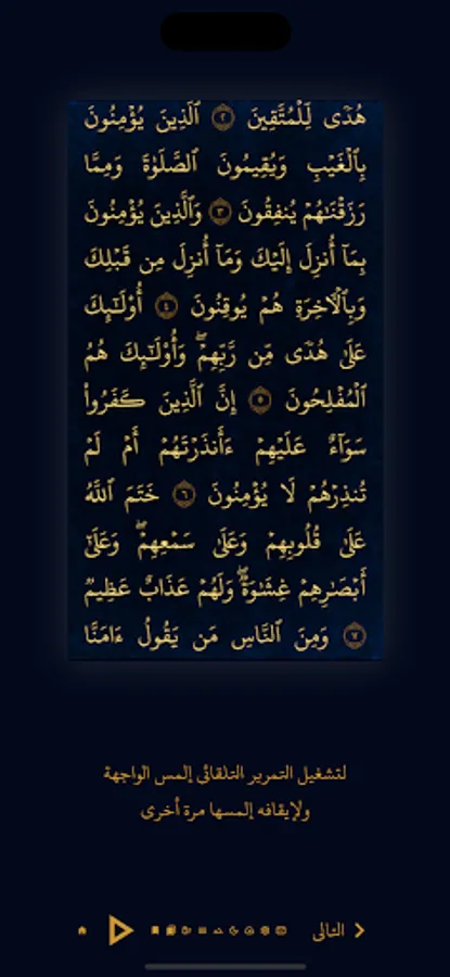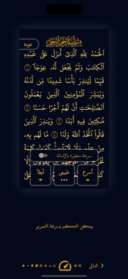 The main feature is automatic scrolling with different speeds so that the verses are read without movement with the ability to turn on and off with one touch.