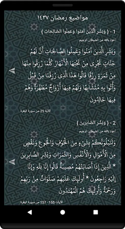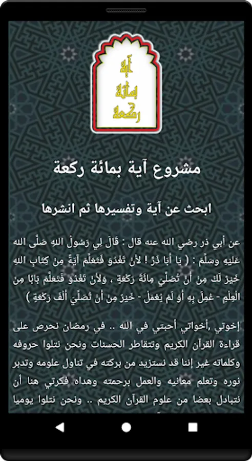 This application is a portable version of the project, which facilitate follow-up and participation of topics, the application can also be used in daily sessions to learn to interpret the verses and meanings with family and friends or in the mosque when the break sessions in prayer Taraaweeh and.
