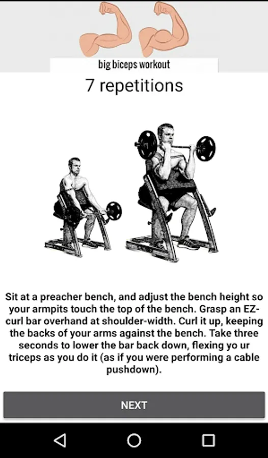 Do your biceps workout every other day,and folow along with aplication.Aplication leads you throught the training.It shows you how much reps you should do,how much rest you should take.
