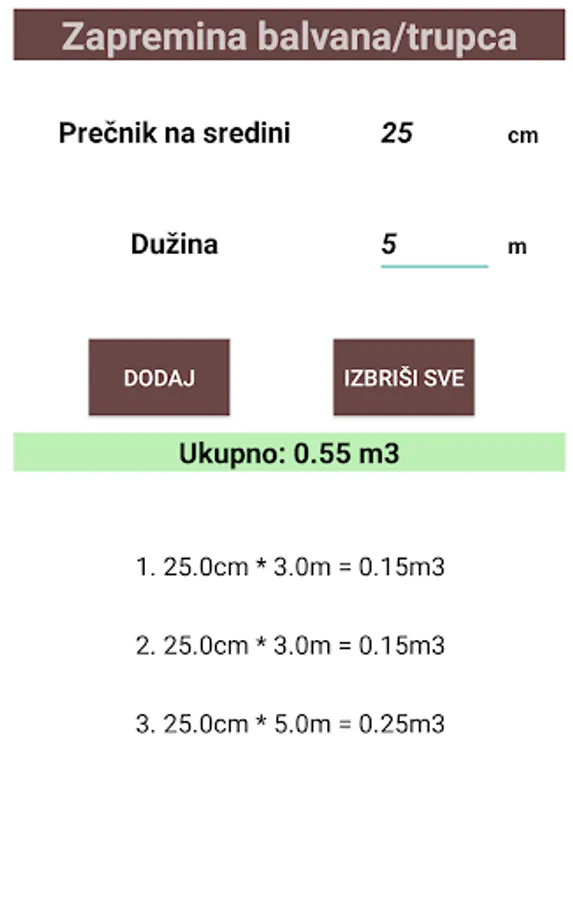 The application of the so-called cubicle is intended to facilitate the everyday life of smaller craftsmen when calculating the volume of a fallen tree. All that you need to do is enter the length and the diameter and the application will only calculate the volume.