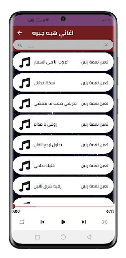 You do not need to play each of Heba Jabra's songs separately, as the Hiba Jabra 2023 songs application without the net plays the songs automatically, and this is a convenient feature for users.