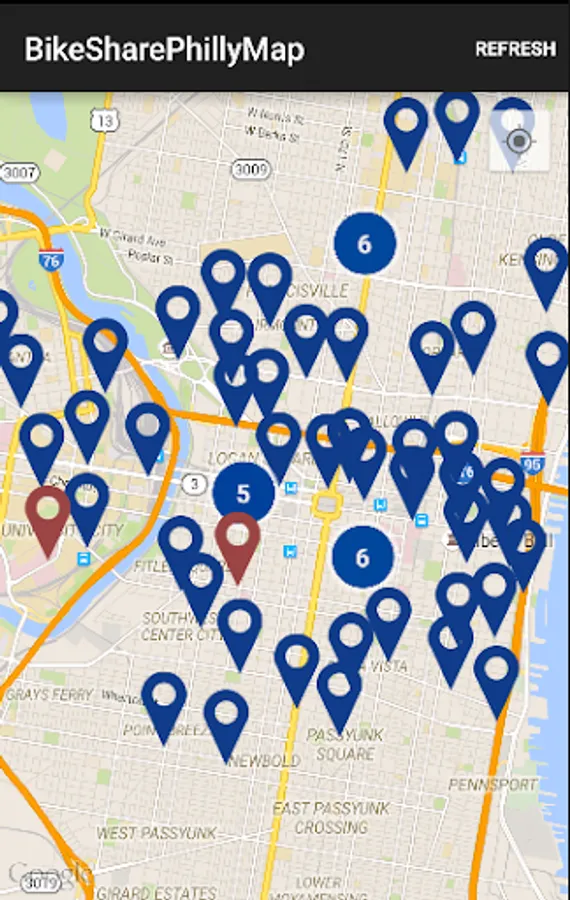 Written in an over caffeinated daze this morning (release early, release often right?) This project shows available bikes and available docks on a nice little android map.