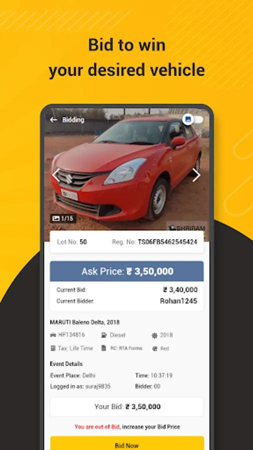 The Shriram Automall mobile application empowers you to easily acquire used vehicles or equipment. Use the MySAMIL mobile app to register yourself, upload the required KYC documents, view and participate in live bidding events, make refundable security deposit (RSD) payments, contact us, and access more information about our services, all in one convenient platform.