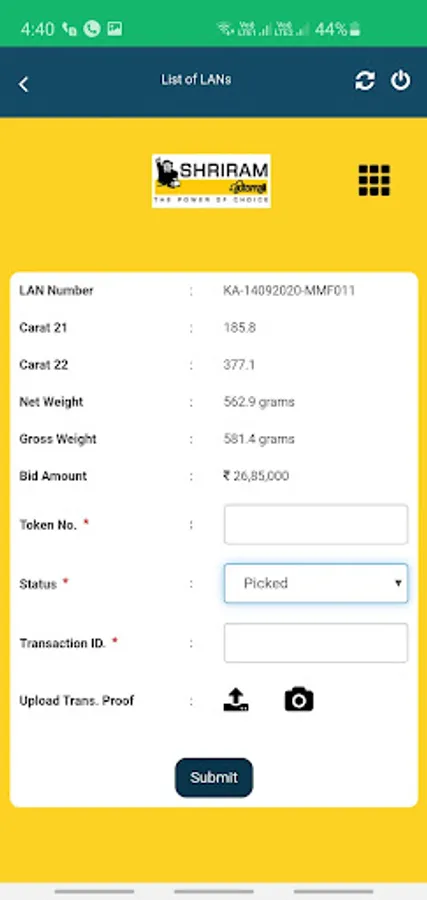 Application for the gold buyers to pick there gold packets from SAMIL. Buyers will pick the gold packets from the sellers in branch and uploading the receipt for the reference