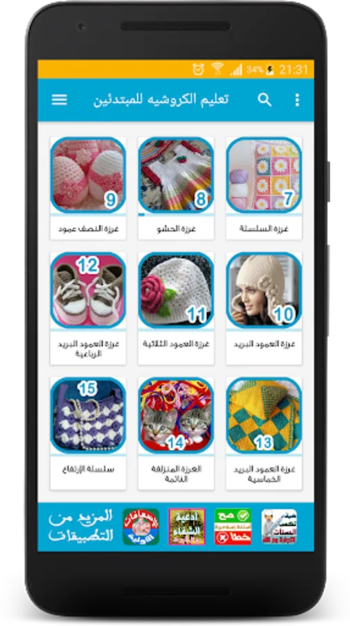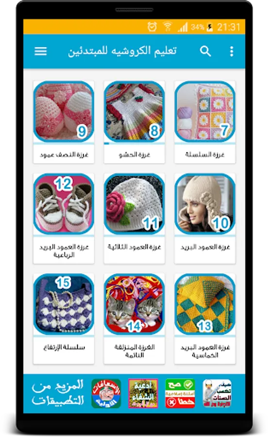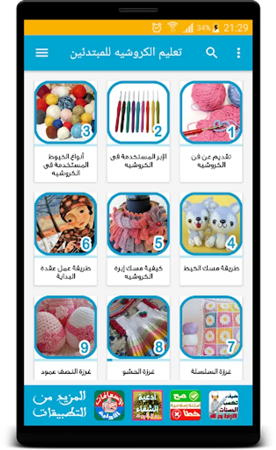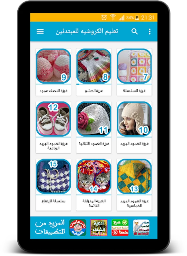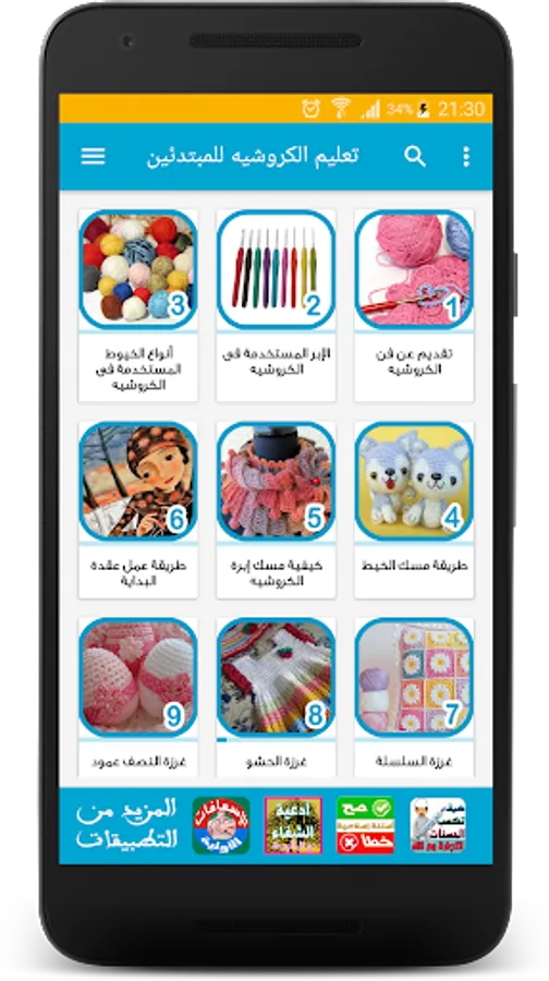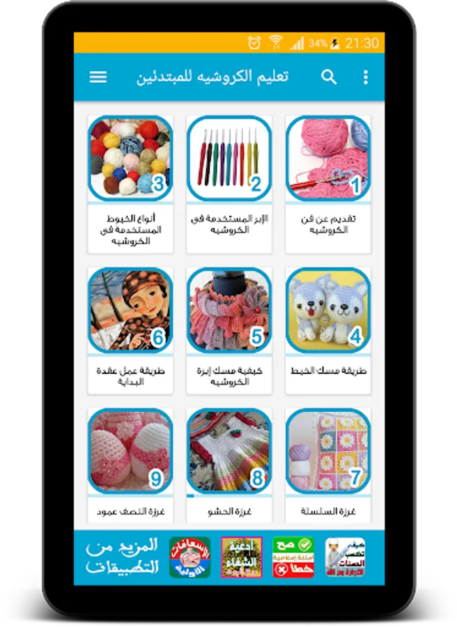 Crochet education for beginners, an application that contains crochet lessons from start to professional, step by step, with photos and videos.