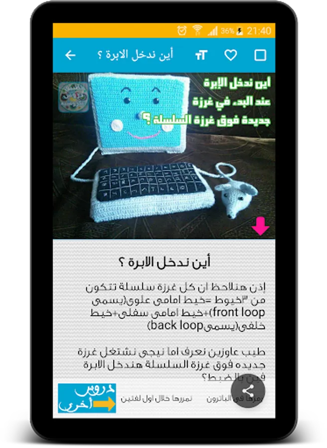 Application dedicated to the basics of crochet and educational lessons in learning the art of crochet for beginners and learn crochet with pictures and explanations of crochet and learn stitches crochet with pictures: