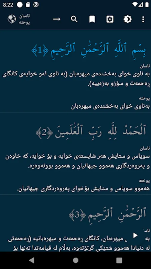 ئەم قورئانە یەکێکە لەهەر قورئانە پیشکەوتوەکانى مۆبایل بۆ نەوەى نوێ