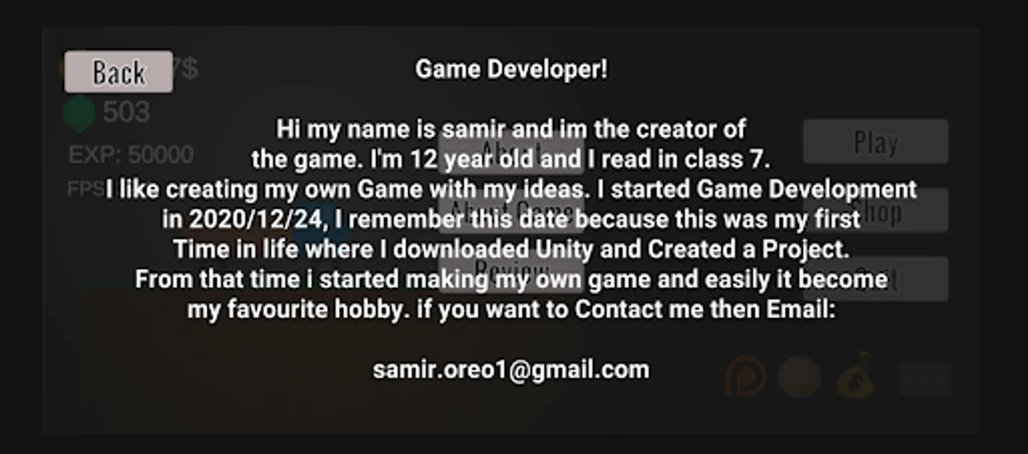 My name is Samir✨✨, and I'm the developer of the game💻💻! I'm 12 years old😃. This game has a lot of high-quality things that the player will love❤❤❤. like the wheel physics, truck temperature , Engine Oil, Coolant, Transmission Fluid and Much more!🔨🔨🔨. The game has gam, money, Experience system which allows you to buy new maps✔✔ and exchange, money for gam and gam for money and gam for EXP💲💲💲.