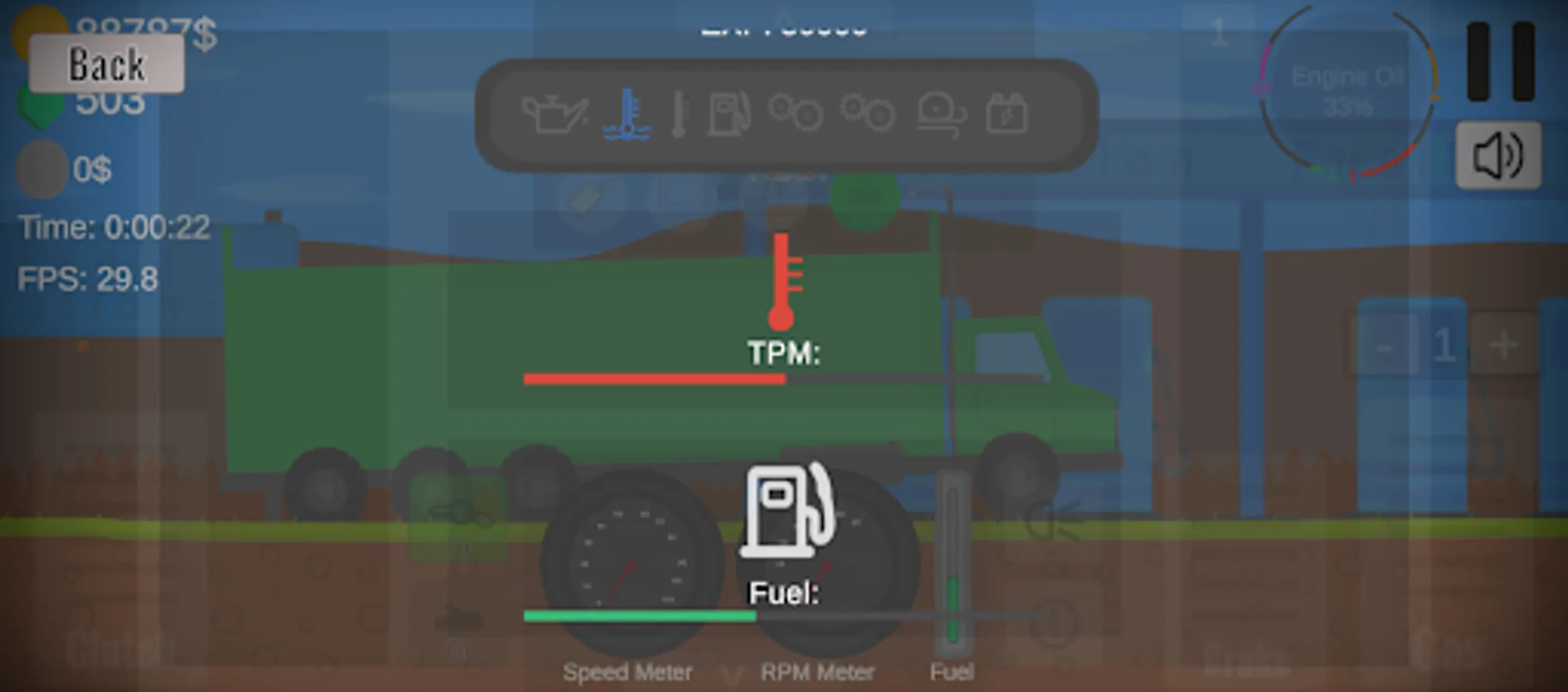 and you shod not press the gas paddle for to log time😓😓, Because it will increase your truck temperature and Also it Will Decrees Your Truck Fuel, Oil, Coolant, If Your Coolant Is In Low Then Your Truck Will Got On Fire Like Truck On Fire😓😭😭!