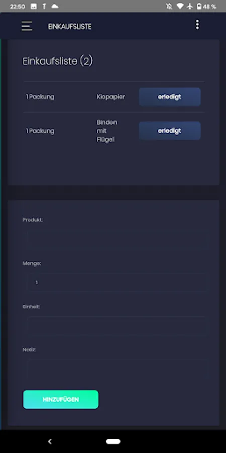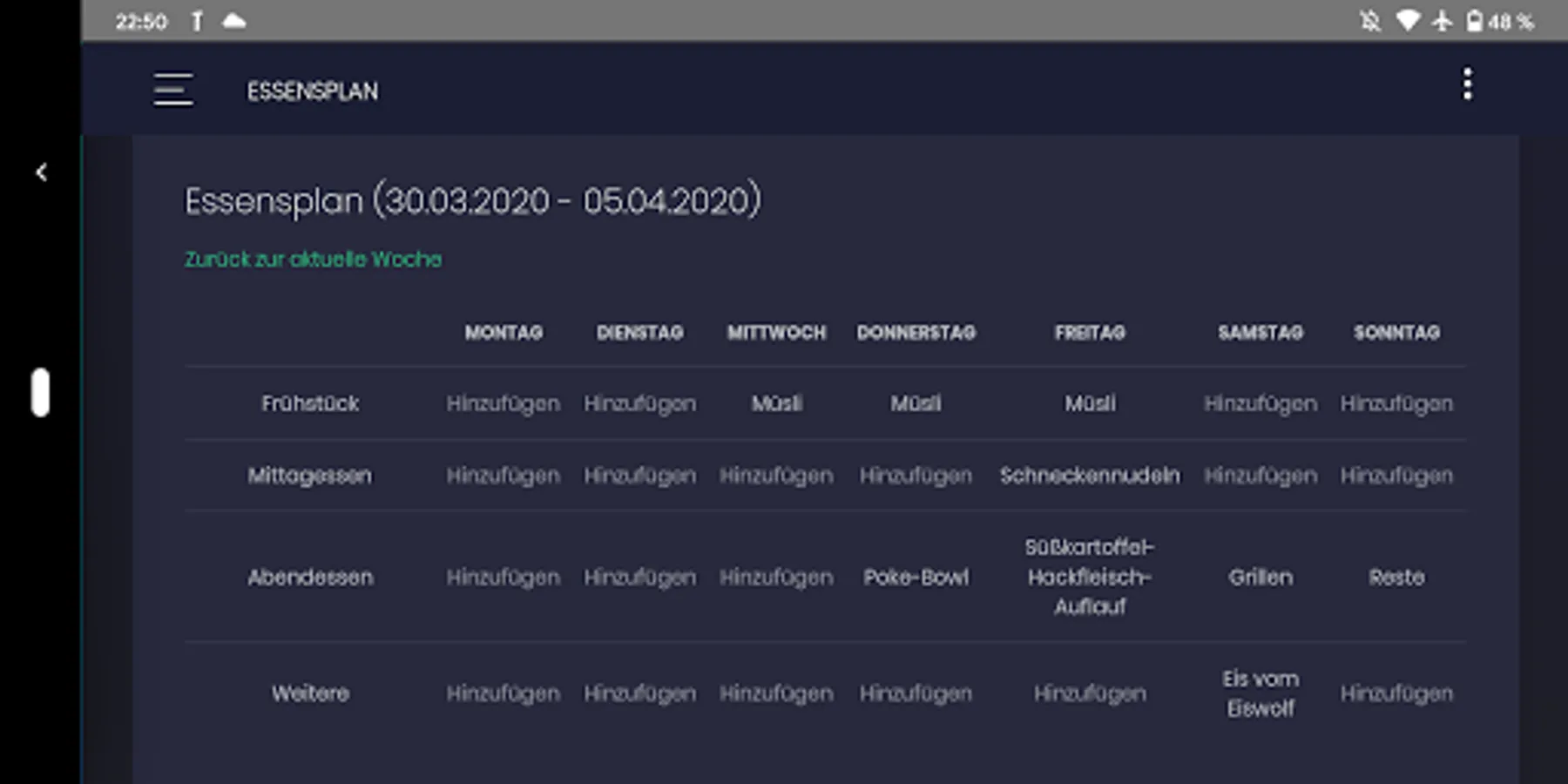 Manage the meal plan, grocery list or money directly through this app. Be a member of one or more groups and let them know that you are coming to eat. Record that you have done the shopping for the flat share and they owe you money or write down that you urgently need toilet paper.