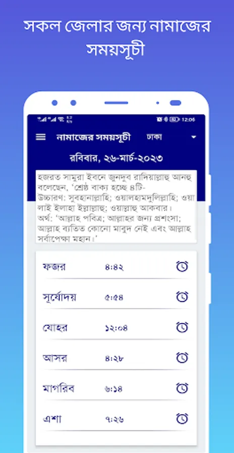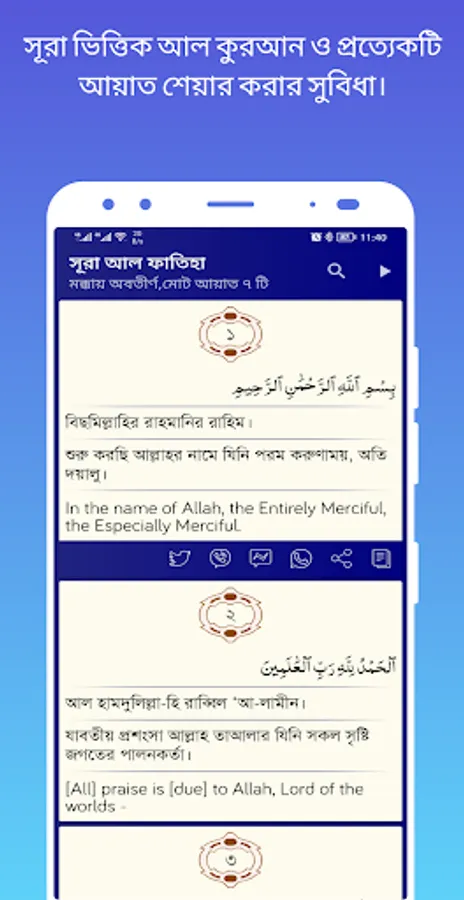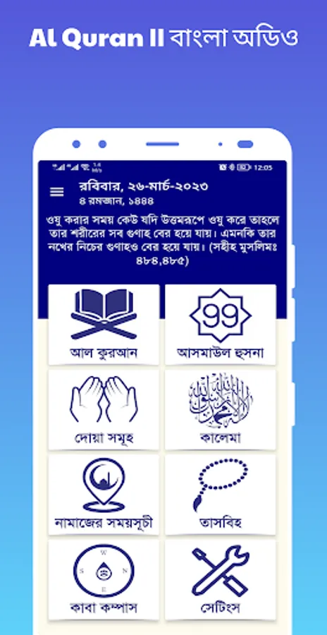 Al Quran - Bangla Quran (Audio) is an Islamic app for all of Islamic ummah, Specially this app has been made for Bangladeshi Muslim ummah who are want to read Quran with Arabic/Bengali. By using this Al Quran app user will get more features like, Allah 99 Names, Dua, Kalema, Prayer schedule of all district, Tasbih, Kaaba Compass.