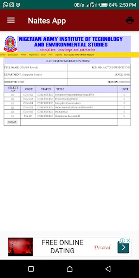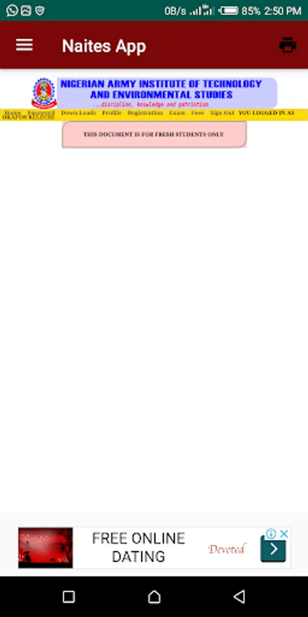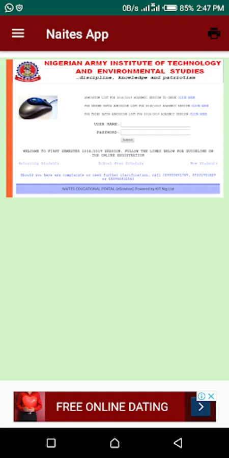 This is a Mobile App for Nigerian Army Institute of Technology and Environmental Studies Nasme Barrack Makurdi