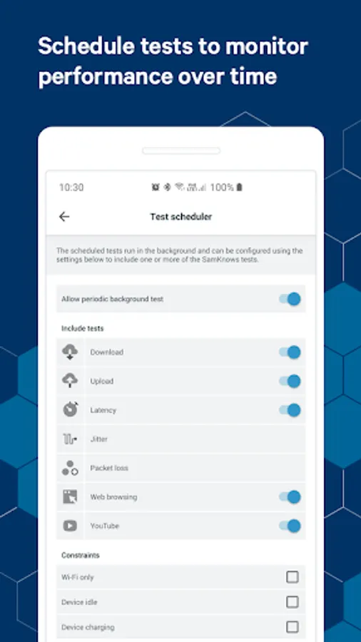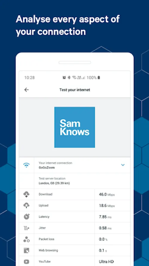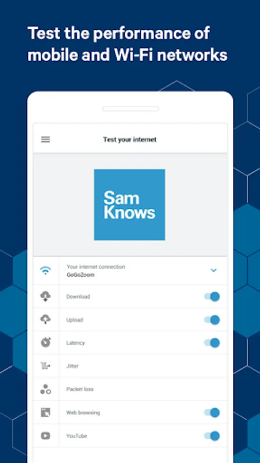 SamKnows Wi-Fi and mobile internet speed and performance measurement application.