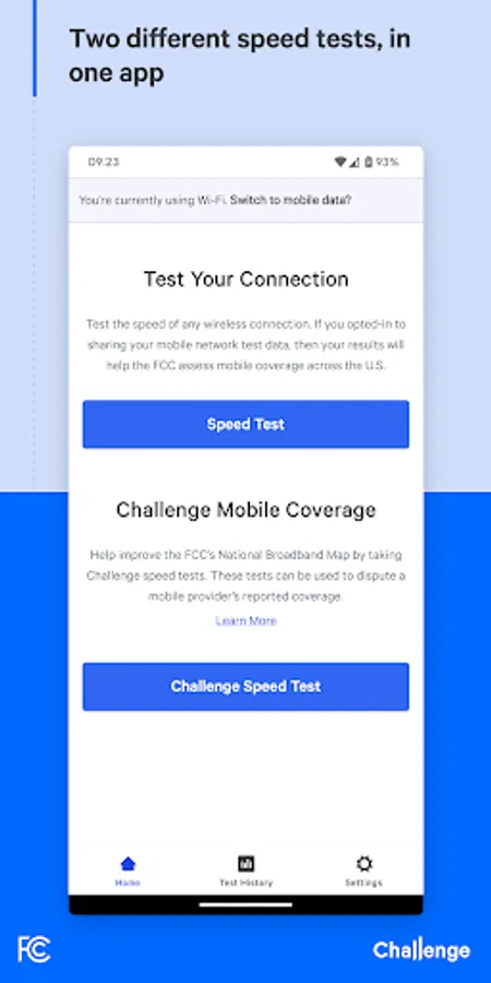 * Run tests in Speed Test mode to check your connection or in Challenge mode to challenge wireless coverage and improve the FCC’s Broadband Map.