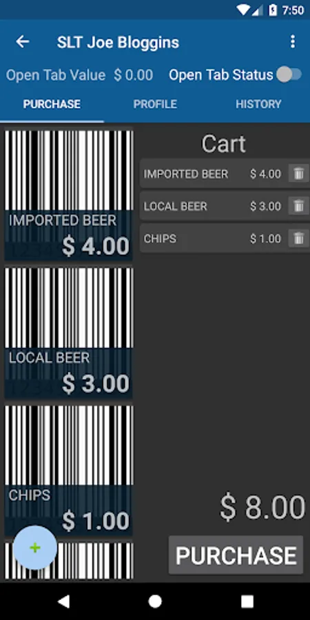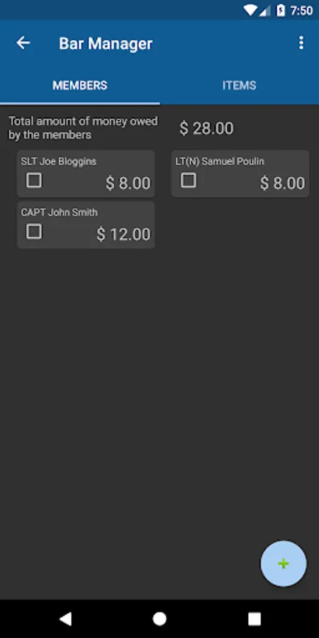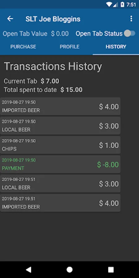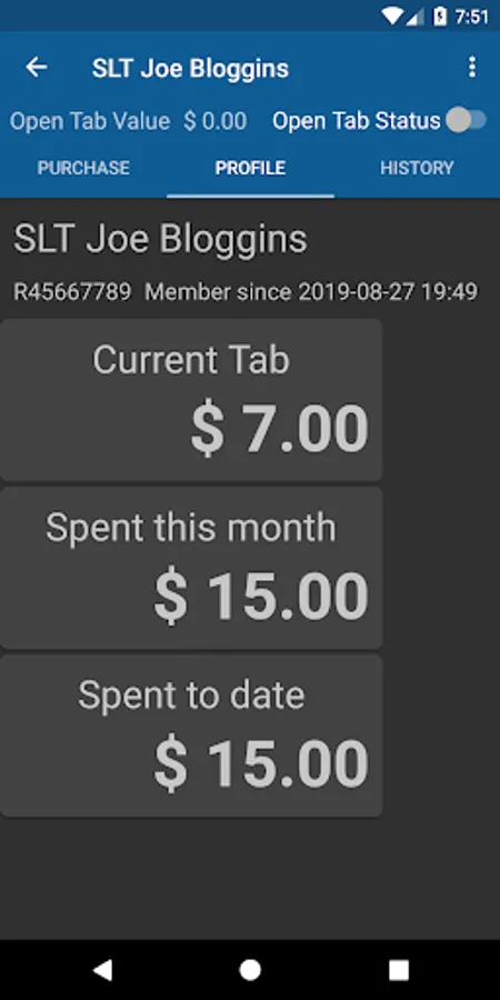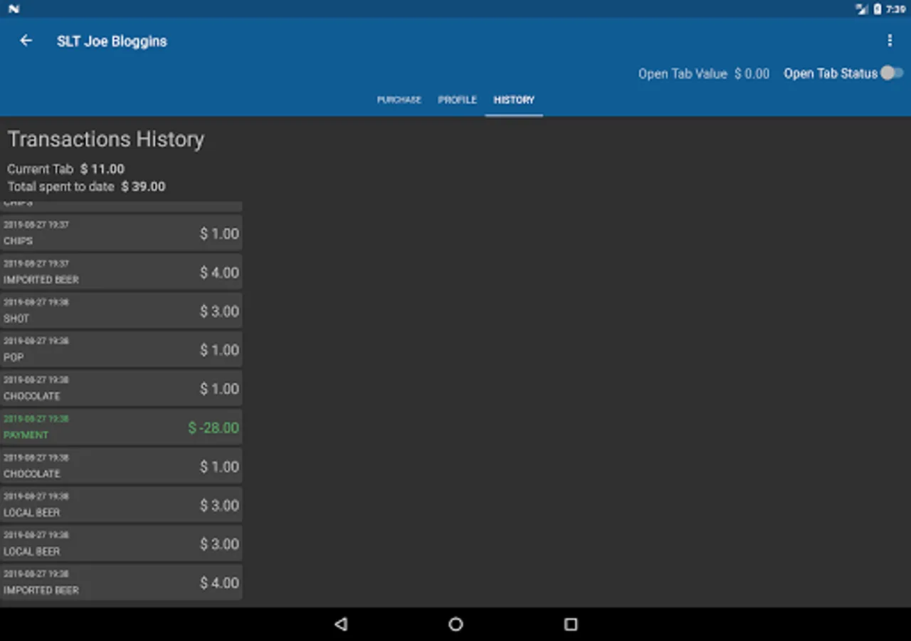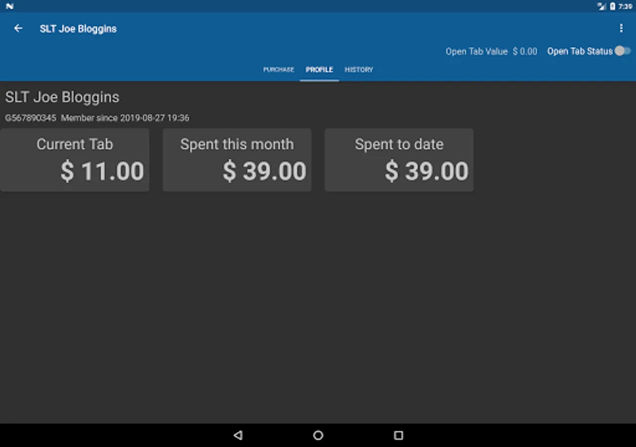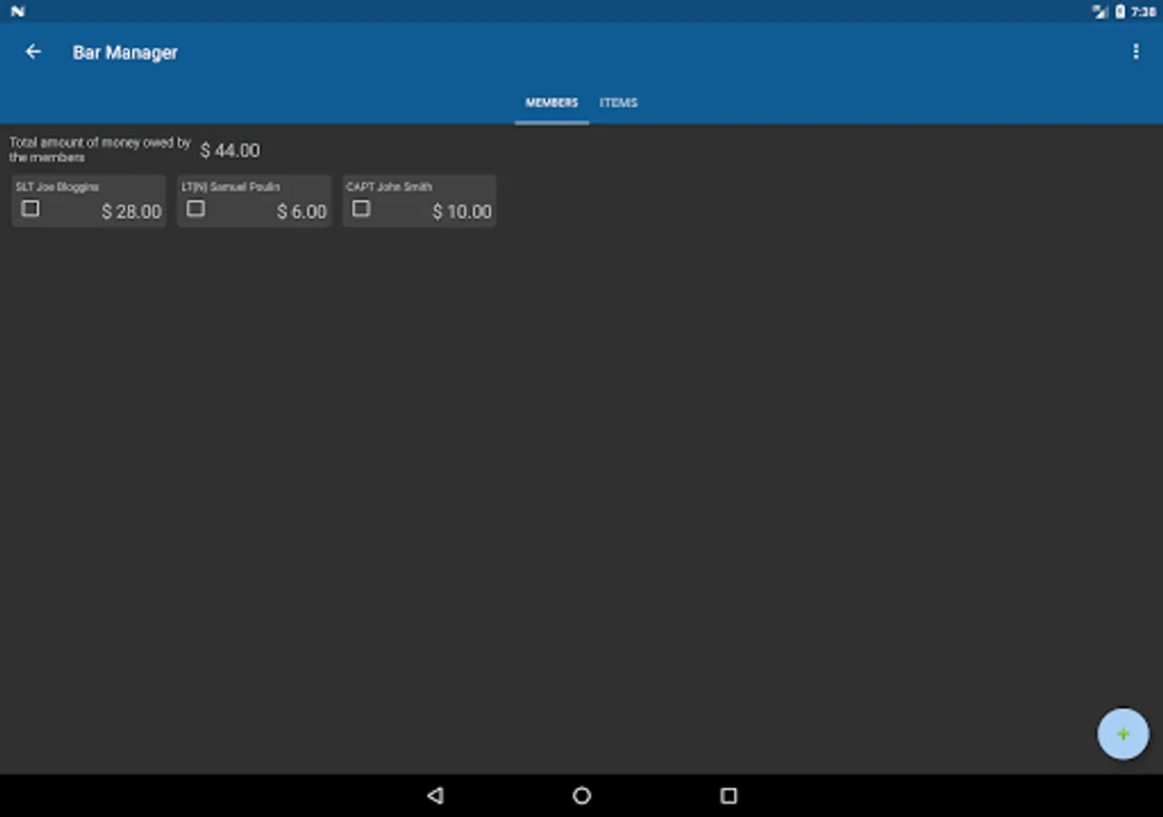 This easy to use app is designed to run on a tablet that is left by the bar. Members can create their tab and add items to it (record expenses). The bar manager can then easily see everyone's tab.