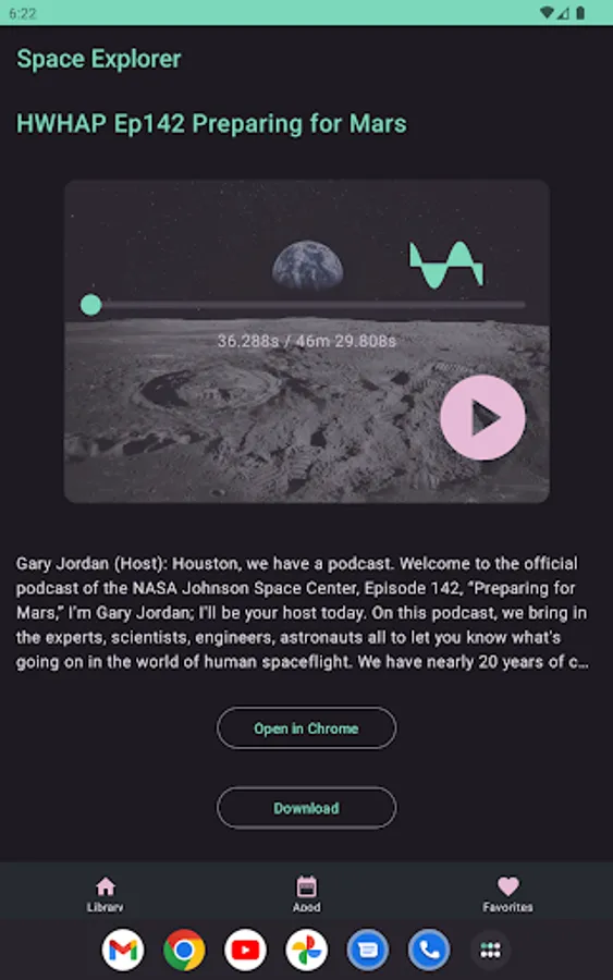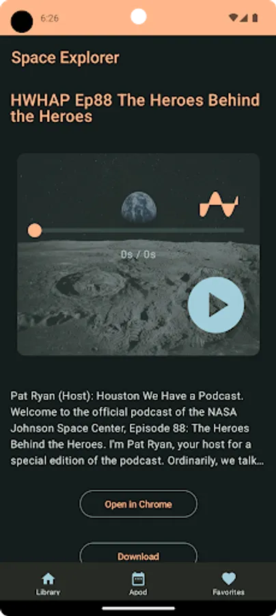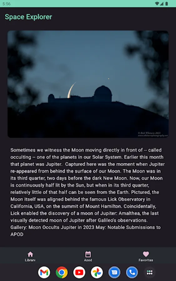 Space Explorer is an Android application built using Kotlin and Jetpack Compose. It allows users to explore space related resources and information provided by NASA through various APIs.