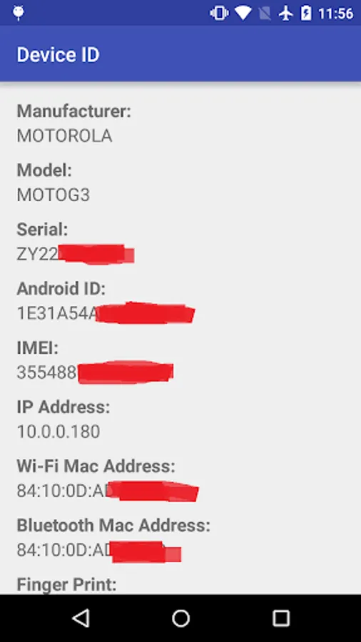 Get the important device details like Android ID, IMEI, IP Address and few more.