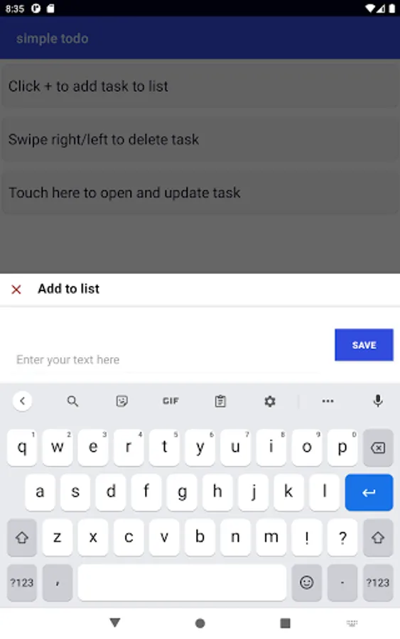Simple todo app is a single todo list application which is easy to maintain and to keep all your thoughts in a single place.