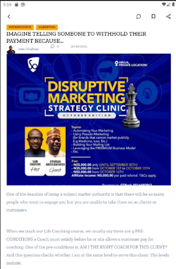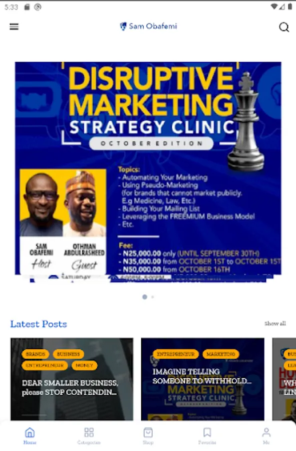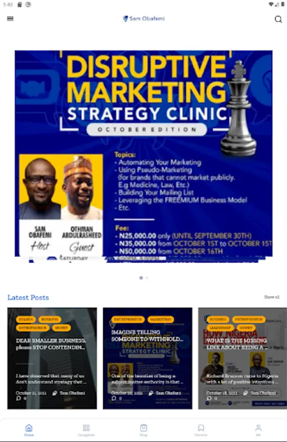 Sam Obafemi (The Octopus) is an unconventional thinker. He likens himself to an Octopus whose primary preoccupation is to solve problems, and in fact, where possible, help people avoid them. He is a trained computer scientist turned behavioural change therapist and small business developer.