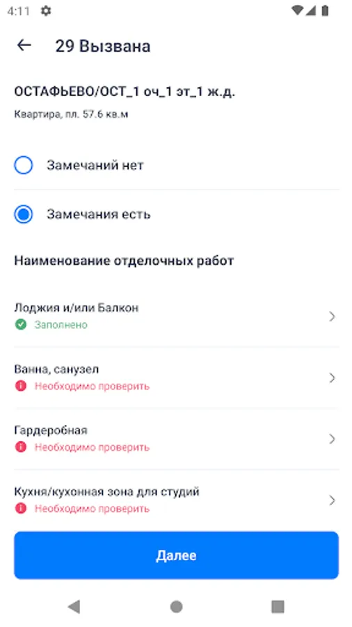 The buyer will be able to remotely accept the purchased apartment directly in the application, check its condition and sign all the necessary documents.