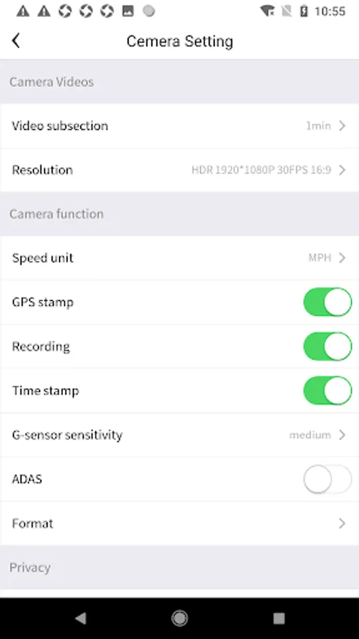 The APP is used together with our self-developed recorder to get rid of the traditional driving recorder button mode. The APP can preview images in real time, watch and download pictures and videos online, and directly set the driving recorder parameters through the APP.
