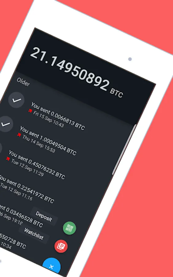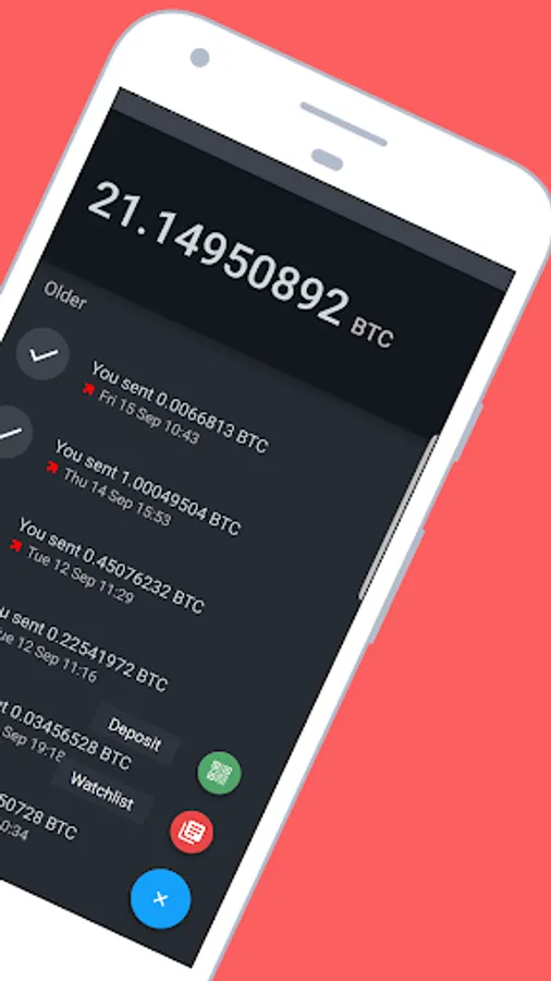 • Remote deposit allows you to receive bitcoin payments into any tracked wallet or address without needing access to your private keys.