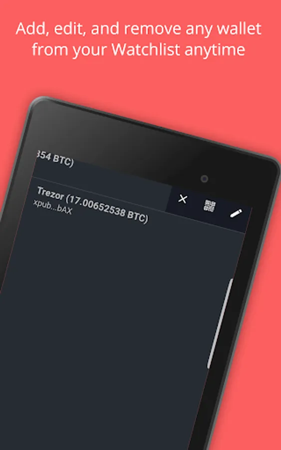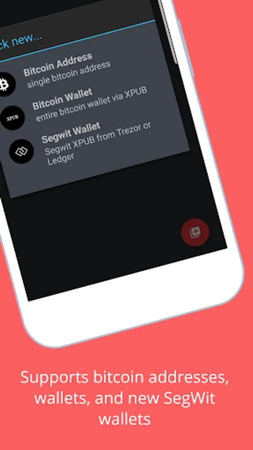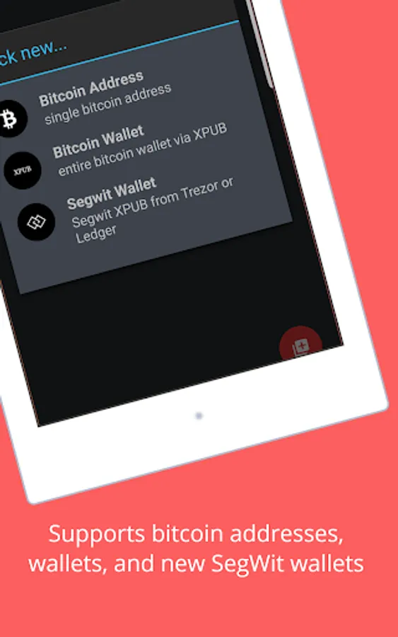 • Track any type of bitcoin address or extended public key, such as those created by Mycelium Wallet, Coinomi, Ledger, Trezor, and BRD.