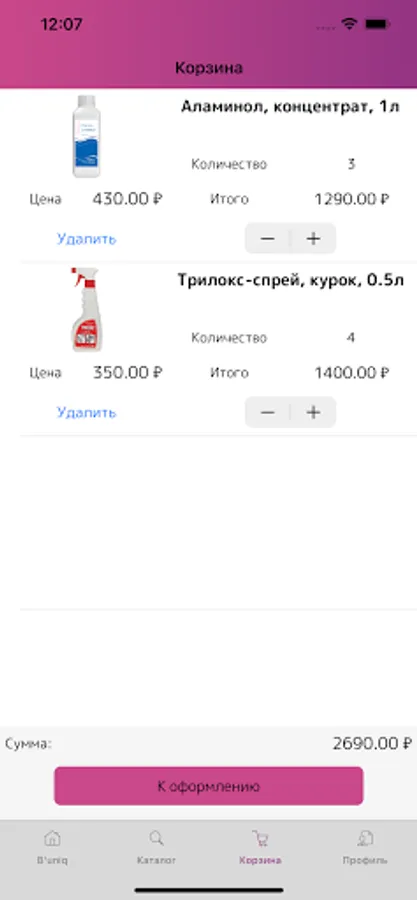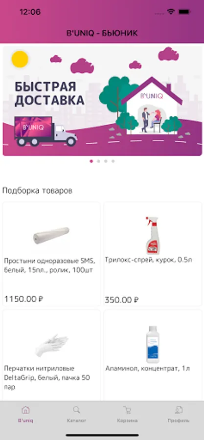 In our application, you can easily order any goods and order delivery by courier or to the point of issue!