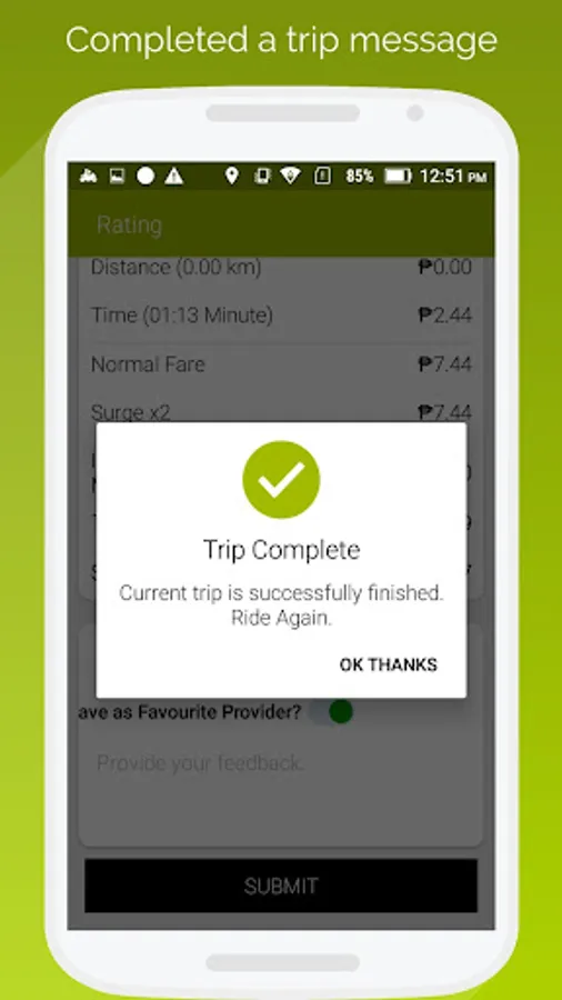 + When you safely arrive at your destination, you could rate your driver and provide feedback to help us improve your experience with us.