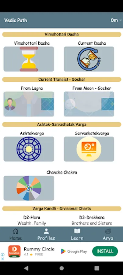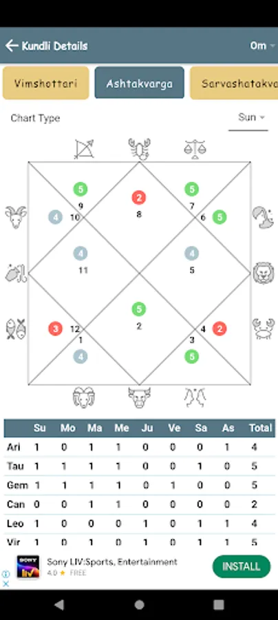 Vedic path app includes features such as basic astrological calculations, birth panchang details, planetary positions, horoscope charts, divisional charts, Vimshottari dasha, Ashatakvarga, Bhinnashtak Varga table, Sarvashtak Varga table, Bhinnashtak Varga chart, Sarvashtak Varga chart, Sarva Chancha Chakra, Gochar-transit calculations.