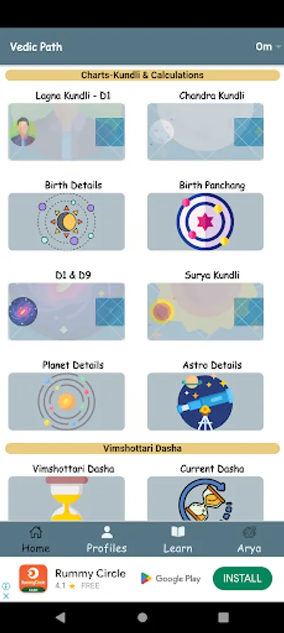Vedic path app includes features such as basic astrological calculations, birth panchang details, planetary positions, horoscope charts, divisional charts, Vimshottari dasha, Ashatakvarga, Bhinnashtak Varga table, Sarvashtak Varga table, Bhinnashtak Varga chart, Sarvashtak Varga chart, Sarva Chancha Chakra, Gochar-transit calculations.