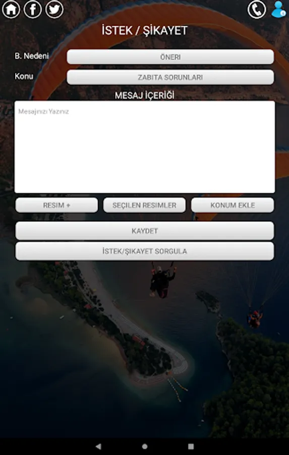 - Requests / Complaints: You can send pictures and the location specifying your wishes or complaints, complaints can query requests you have made before.